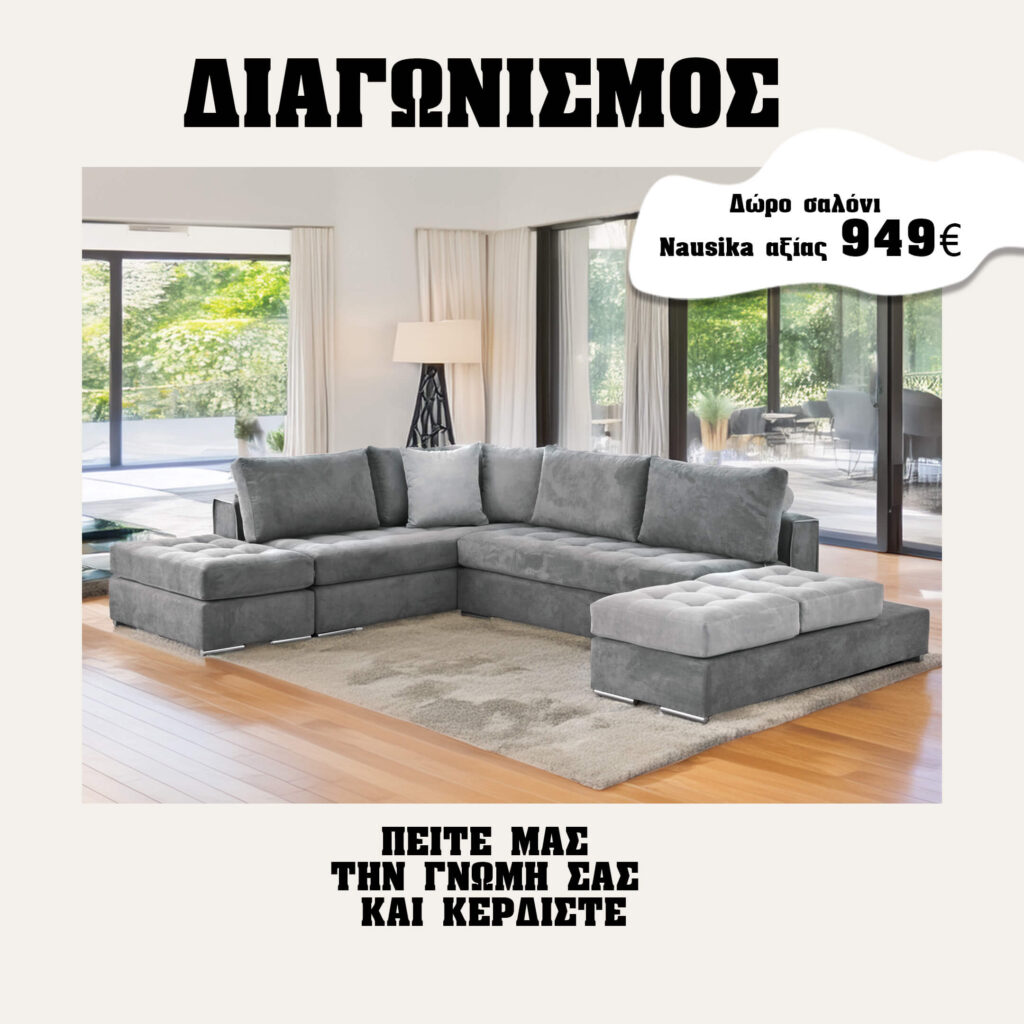 Στο Epiplosou.gr μας ενδιαφέρει η αποψή σας . Πείτε μας τη γνώμη σας και λάβετε μέρος στην κλήρωση για να κερδίσετε ένα σαλόνι Ναυσικά αξίας 949€